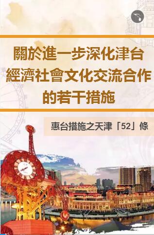 點(diǎn)擊上圖,了解《關(guān)于進(jìn)一步深化津臺(tái)經(jīng)濟(jì)社會(huì)文化交流合作的若干措施》。