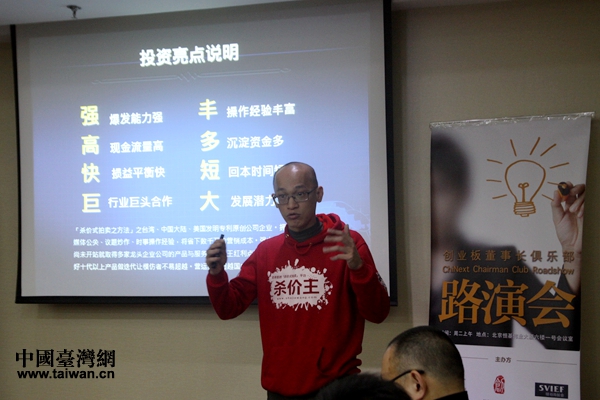臺(tái)灣創(chuàng)業(yè)團(tuán)隊(duì)“殺價(jià)王”正在進(jìn)行路演。(中國(guó)臺(tái)灣網(wǎng) 袁楚 攝)