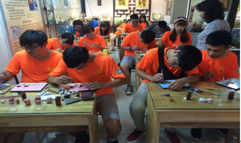 “體驗溫州發展 放飛創業夢想” 實習實踐活動按計劃進行。來自臺灣的同學們認真的投入到第一階段的學習中。他們被分成兩組,在浙江創意園的工作室,分別跟隨資深大師,進行甌塑、甌繡的學習體驗。