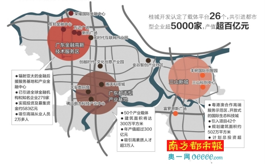 經過10年的轉型,桂城從制造業名鎮轉變為宜商宜居的現代都市。廣東金融高新技術服務區、廣東都市型產業基地、三山新城三大產業平臺,是城、產、人融合發展的典范,為桂城未來產業和城市的發展奠定了堅實的基礎。目前,沿千燈湖軸線、一環東線以及新交通沿線所建立起的20多家、300萬平方米的產業載體組成“桂城產業載體聯盟”,將對外統一招商,對內資源共享。此外,更吸引了全球五大中介行(第一太平戴維斯、高力國際、仲量聯行、戴德梁行、世邦魏理仕)與桂城產業載體聯盟簽訂了戰略合作協議。未來將通過其覆蓋全球的專業力量,集聚全球技術、資本、創意、人才,特別是廣州、深圳、港澳的資源。