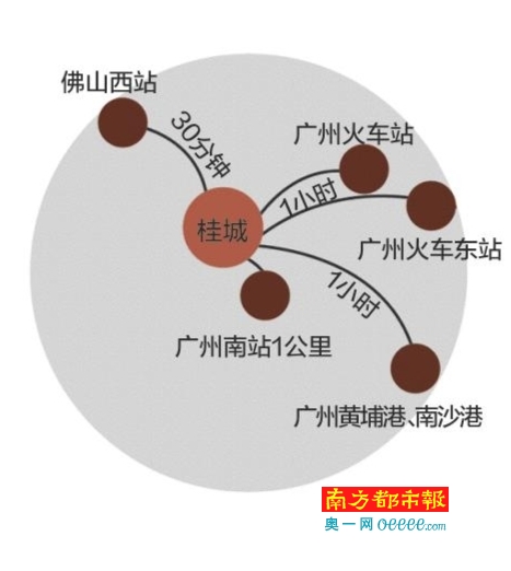 桂城位于廣州西面,東接廣州荔灣區、番禺區,距離廣州市中心城區10公里,最近處距離廣州南站僅1公里,是名副其實的“廣佛同城”核心區。