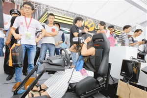 現場展示的一款自主研發虛擬頭盔吸引市民眼球。該產品只需一個U盤就可隨意下載,即下即玩,讓體驗者無限制地觀察三維空間內的事物。