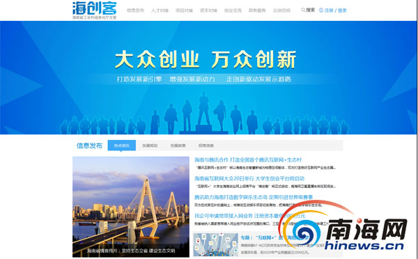 南海網海口12月3日消息(南海網記者 徐靜涵)2015海南“互聯網+”創新創業節12月16日將在海口開幕。海創客、南海網將聯合對開幕式進行視頻直播。