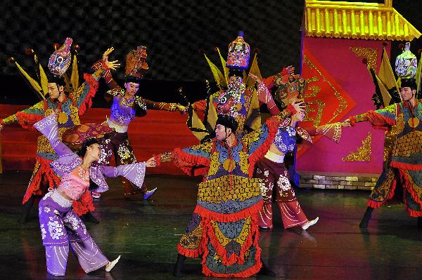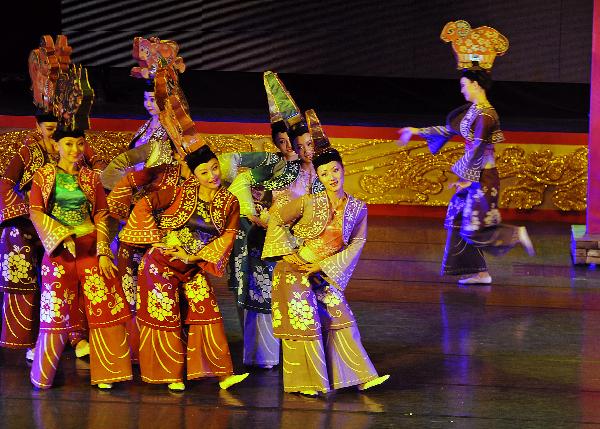 A performance of music and dance showcasing the history and culture of ancient China's Tang Dynasty (618-907) is held in Taipei, southeast China's Taiwan, Sept. 14, 2010. The performance is part of the 2010 Shaanxi cultural week held in Taiwan. Shaanxi, now a province in northwest China, was the heartland of the Tang Dynasty. (Xinhua/He Junchang)