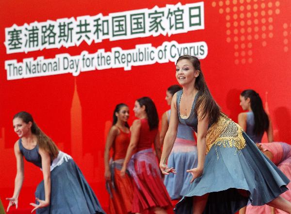 Dancers perform during a ceremony marking the National Pavilion Day of Cyprus at the 2010 World Expo in Shanghai, east China, Aug. 28, 2010. (Xinhua/Liu Ying)