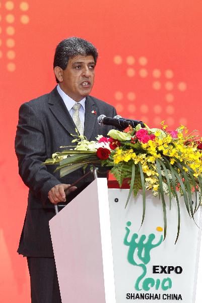 Neoclis Sylikiotis, interior minister of Cyprus, addresses a ceremony marking the National Pavilion Day of Cyprus at the 2010 World Expo in Shanghai, east China, Aug. 28, 2010. (Xinhua/Liu Ying)