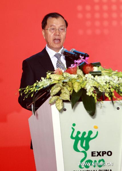 Hua Junduo, China's representative-in-chief for the Shanghai World Expo addresses the ceremony to mark the National Pavilion Day for Mongolia at the 2010 World Expo Park in Shanghai, east China, Sept. 13, 2010. (Xinhua/Ren Long)