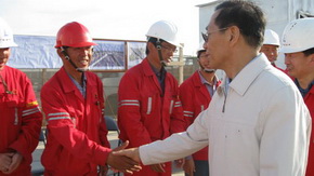 楊大使代表中國駐沙使館向施工現場干部職工致以誠摯的新春問候。楊大使鼓勵大家建一流工程,創一流業績,為祖國爭光。