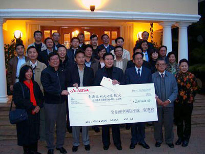 4月19日,全非洲中國和平統一促進會在約堡召開“南非僑界向青海玉樹地震災區獻愛心大會”,號召南非僑界向災區人民展示愛心,并商定在4月26日將善款集中交往中國駐約堡總領館。捐款當日,往日較平靜的總領館門庭若市,車水馬龍,僑領紛紛將各筆本人或僑團捐款交到總領館人員手中。由于人數眾多,一時間交款隊伍排成長龍,場面感人肺腑。最后的捐款數額正好與玉樹地震發生的時日相同,既2,010,414蘭特。