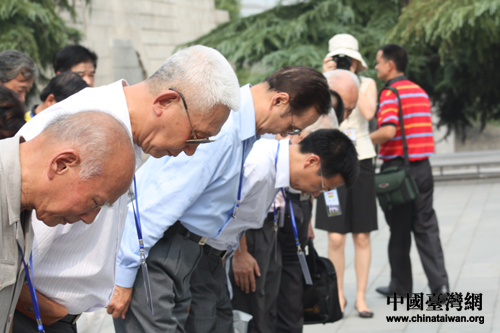 海內外黃埔軍校同學會的校友、親屬、專家學者向遇難同胞三鞠躬。(中國臺灣網 肖燕 攝) |