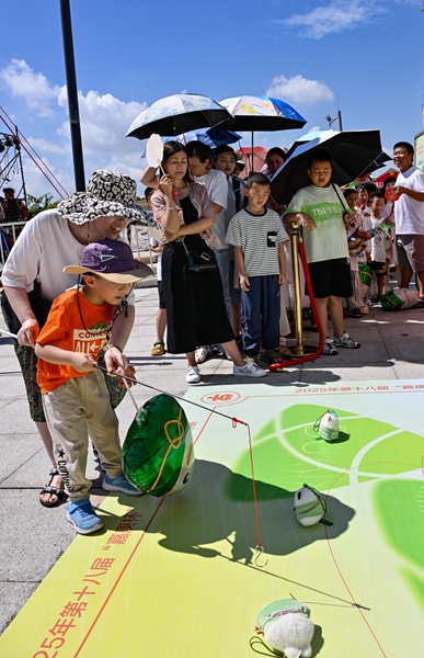 2025年第十八屆 “嘉庚杯”“敬賢杯” 海峽兩岸龍舟賽配套舉行了豐富多彩的活動。圖為市民參與釣粽子比賽。
