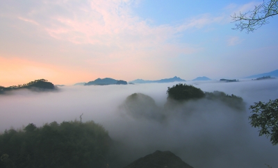 云海是武夷山常見的自然奇觀。云海來時,云窩景區(qū)天游峰云煙迷漫,層巒疊翠,在朝陽交相輝映下,多姿多彩。云霧飄渺,動中有靜,靜中有動,美不勝收。千姿百態(tài)的武夷山群峰在茫茫云海中若隱若現(xiàn),好似人間仙境。■ 邱汝泉 文/圖