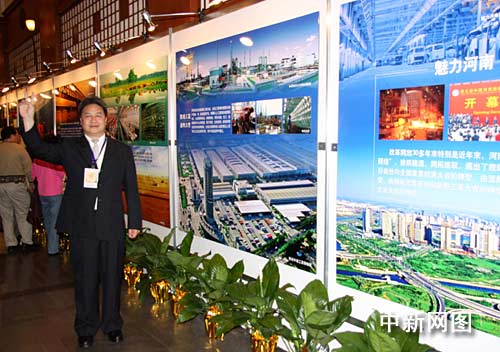 12月16日,由“中原文化寶島行”訪問團主辦的“魅力河南圖片展”在臺北圓山大飯店開展。圖為臺灣一名旅行社的經理在參觀后做手勢稱贊確有魅力。中新網發 陳立宇 攝