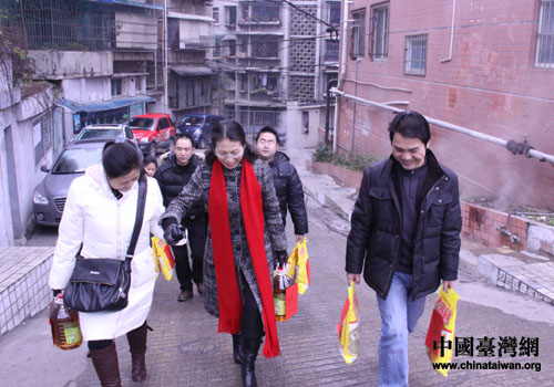 中國臺灣網(wǎng)1月16日貴陽消息 日前,貴陽市委統(tǒng)戰(zhàn)部副部長、市臺辦主任李靜率副調(diào)研員姚天龍及干部職工,攜帶糧、油、等慰問品,慰問看望生活困難臺屬,送去新年的問候和祝福。