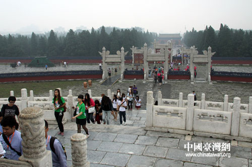 兩岸旅游院系學(xué)生游覽天壇。(中國臺(tái)灣網(wǎng) 王曉蕊 攝)