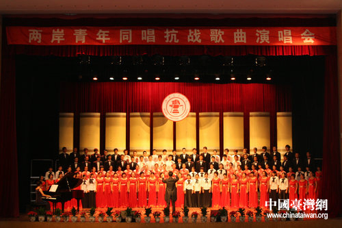 演唱會在臺北愛樂青年合唱團清亮的高聲中正式開始。此次來到大陸的合唱團主要有臺灣新竹交通大學、臺灣政治大學、臺灣師范大學等十余所高校的在校大學生組成。臺北愛樂青年合唱團演唱的幾首具有臺灣特色的《抗戰歌》、《煙雨漫江南》等抗戰歌曲,贏得觀眾的陣陣掌聲。接下來,由中國青年政治學院學生合唱團、北京交通大學學生合唱團演唱的《游擊隊歌》、《松花江上》、《保衛黃河》等數首耳熟能詳的抗戰歌曲,將整場演唱會推向高潮。