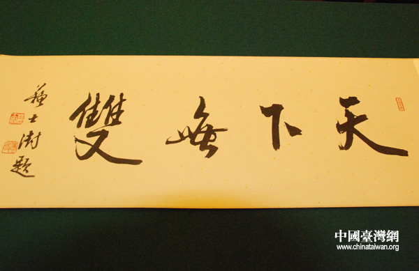蘇士澍先生題寫(xiě)的“天下無(wú)雙”(中國(guó)臺(tái)灣網(wǎng) 劉瑩 攝)