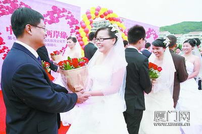 省政協(xié)委員劉珂稱,截至2009年底,我省共辦理閩臺婚姻登記 96870對(全國共29.5萬對)。臺灣女嫁大陸男的個案日漸增多,逐漸實現(xiàn)了“雙向交流”。 臺灣島內數(shù)據(jù),大陸嫁臺灣與臺灣嫁大陸的比例大概為7比3,而且后者比重未來有呈現(xiàn)激增趨勢,閩臺通婚走向正常化是必然的發(fā)展趨勢。
