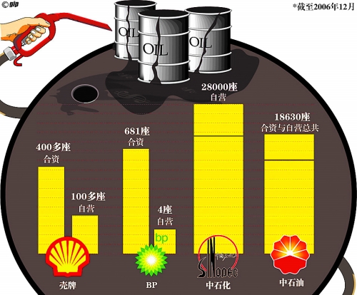 外國石油公司與中國石油公司在中國加油站數(shù)對比。CNS供圖 |