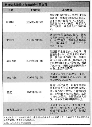 目前,在納斯達(dá)克上市的中國公司市盈率平均波動范圍是在30-40倍的區(qū)間內(nèi)。而新加坡、香港大概在13-16倍的市盈率范圍內(nèi)波動,倫敦可能更低一點(diǎn)。這樣,從最“實(shí)在”的角度來講,納斯達(dá)克給了中國公司高的市盈率或者高的評估值。像盛大這樣的公司,市值20億美元,高出30多倍的市盈率,就等于是6000萬美元。一下多出6000萬美元,對盛大公司來說是一筆豐厚的財(cái)富,這是實(shí)實(shí)在在的利益。