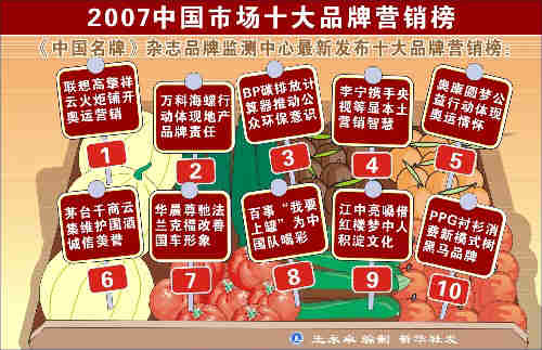 圖表: 2007中國市場十大品牌營銷榜 新華社發(fā)