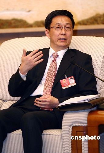 資料圖:2009年3月7日,正在北京參加全國人大會議的上海市市長韓正接受中外媒體采訪,在回答有關迪斯尼落戶上海的提問時說,目前跟迪斯尼方面“尚在戀愛,還沒結婚,何時領證還沒時間表”。 中新社發 杜洋 攝