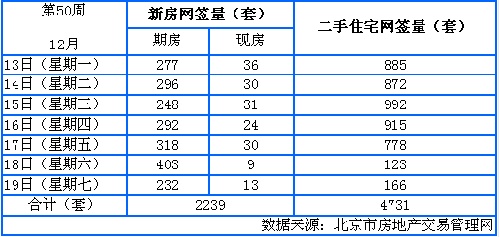 根據北京市房地產交易管理網及偉業我愛我家的統計數據信息顯示:上周(12月13日—19日),全市新建商品房網簽總量為2239套,環比前一周的3649套,大幅下跌38.6%,與去年同期的4742套相比差距達52.8%。全市二手住宅網簽總量為4731套,雖與去年同期相比下跌了52%,但是環比前一周的4142套則上漲了14.2%,日均成交量達675.9套,創4月底北京樓市新政出臺以來的交易量新高。