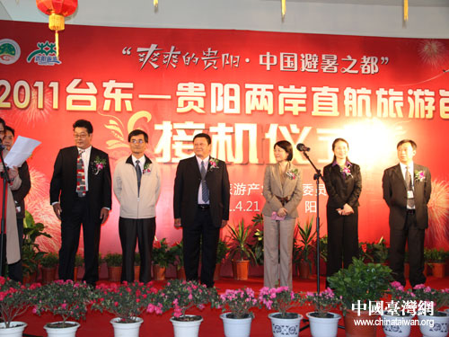 中國(guó)臺(tái)灣網(wǎng)4月22日貴陽消息 4月21日下午13:40分,來自臺(tái)東的旅游直航包機(jī)在貴陽龍洞堡機(jī)場(chǎng)降落,由臺(tái)東縣旅行商業(yè)同業(yè)公會(huì)組織,臺(tái)東旅行商及市民代表近百人組成的交流考察團(tuán)抵達(dá)貴陽。