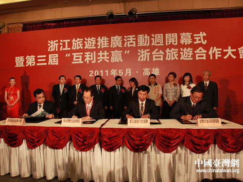 中國臺(tái)灣網(wǎng)5月28日高雄消息 27日下午,浙江旅游推廣活動(dòng)周開幕式暨第三屆“互利共贏”浙臺(tái)旅游合作大會(huì)在高雄舉行。中共浙江省委書記趙洪祝在會(huì)上表示,今年將努力組織10萬名浙江游客赴臺(tái)灣高雄等中南部地區(qū)旅游。