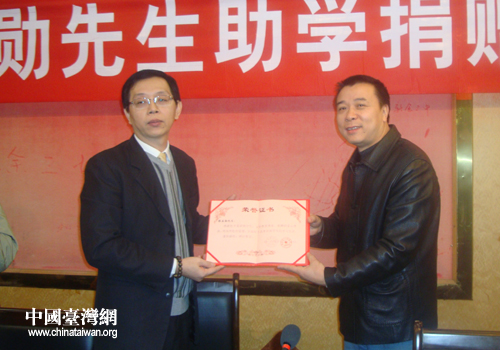 蔡孟勛先生在為推動贛臺之間交流合作的同時,他還以實際行動投身到慈善和捐贈事業(yè)中,奉獻著自己的片片愛心。今年他主動與新余市臺辦聯(lián)系,表達了要資助一批貧困學(xué)生的愿望。作為一名臺胞,能不遠(yuǎn)千里來到新余市無償捐贈,充分體現(xiàn)了兩岸同胞一家親、血濃于水的情感。(中國臺灣網(wǎng)新余市臺辦通訊員謝忠平)