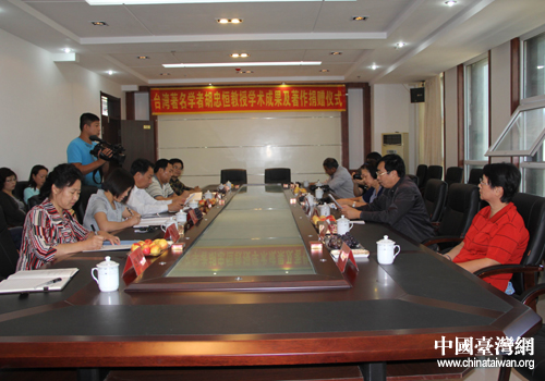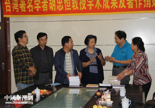 臺(tái)灣著名學(xué)者胡忠恒教授科研成果及著作捐贈(zèng)儀式現(xiàn)場(chǎng)。(圖片來(lái)源:朝陽(yáng)市臺(tái)辦)