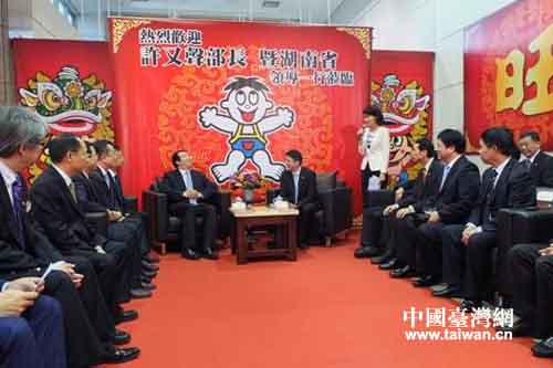 許又聲首先感謝旺旺集團對“2013湖南兩岸文化創意產業合作周”的大力支持。他說,近年來,湖南與旺旺中時媒體集團的交流合作不斷走向深入,湖南廣播電視臺駐臺常駐點選擇在中天電視臺,旺報駐大陸中部地區記者站選擇在湖南長沙,使湖南成為中部六省首個與臺灣實現媒體雙向駐點采訪的省份。