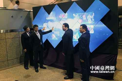 許又聲、蔡紹中、呂煥斌、馬詠睿共同為湖南電視節目在中天電視臺展播啟幕。(中國臺灣網發 康衡 攝)