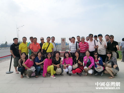 臺中參訪團一行與324號界碑合影。(中國臺灣網 馬一娜 攝)
