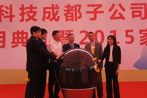 臺(tái)灣聯(lián)發(fā)科技成都新辦公樓正式啟用,四川省臺(tái)辦主任周敏謙(左四)、臺(tái)灣聯(lián)發(fā)科技董事長(zhǎng)蔡明介(左五)等出席并共同觸發(fā)啟動(dòng)球。