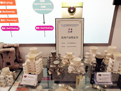 連云港臺資企業---連云港源鈺金屬制品公司作為連云港市唯一獲邀參展企業,首次亮相高交會,展位位于最大的1號館:“信息技術與產品展 ”主題展館。本屆高交會上,連云港源鈺金屬制品公司帶來了3D打印技術在精密鑄造產品中的解決方案——采用3D打印殼模之快速鑄造法、負壓澆鑄正壓成型技術;其中3D打印殼模產品等更彰顯連云港源鈺金屬制品公司的技術實力。期間,吸引了眾多觀眾駐足、交流,紛紛對公司優秀的產品及專業的技術介紹給予了高度肯定。會后,組委會傳來喜訊:連云港源鈺金屬制品公司高交會現場展出的“采用3D打印殼模之快速鑄造法”經過層層評選,獲得了由高交會組委會頒發的優秀產品獎。
