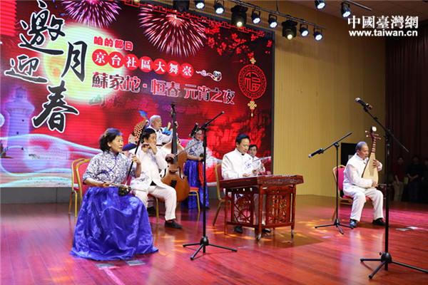 北京海淀區(qū)蘇家坨鎮(zhèn)和高雄市恒春鎮(zhèn)進(jìn)行視頻連線,歡度元宵。圖為蘇家坨鎮(zhèn)表演民樂連奏。(中國臺灣網(wǎng) 郜利敏 攝)