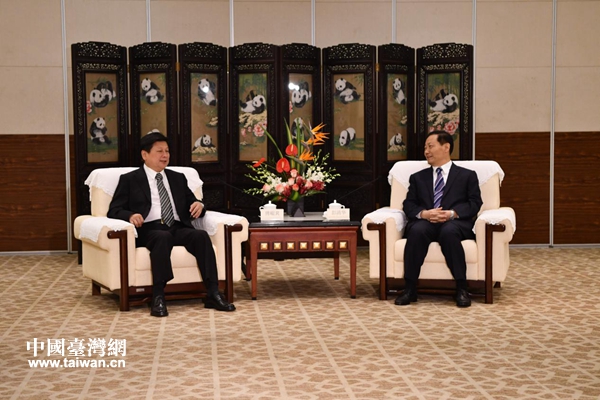 四川省委書記彭清華(右)會(huì)見(jiàn)臺(tái)灣花蓮縣縣長(zhǎng)傅崐萁一行。(圖片來(lái)源:四川省臺(tái)辦)