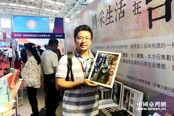 臺商蔡佳欣與他的產品。(中國臺灣網 趙苗青 攝)