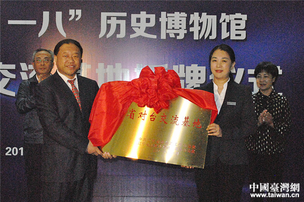 中國臺灣網9月29日沈陽訊 9月26日,沈陽“九·一八”歷史博物館“遼寧省對臺交流基地”授牌儀式在博物館序廳隆重舉行。遼寧省臺辦副巡視員馬戈、沈陽市臺辦主任王羽輕、沈陽市文廣局副局長宋振虹、“九·一八”歷史博物館館長范麗紅及遼寧伊利乳業有限責任公司、沈陽外事服務學校學生代表近200人參加授牌儀式。儀式由沈陽市臺辦副主任王莉主持。