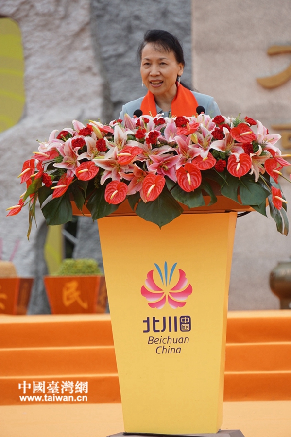國(guó)臺(tái)辦交流局副局長(zhǎng)董碧幽宣布“第一屆海峽兩岸大禹文化交流活動(dòng)”開幕(圖片來源:四川省臺(tái)辦)