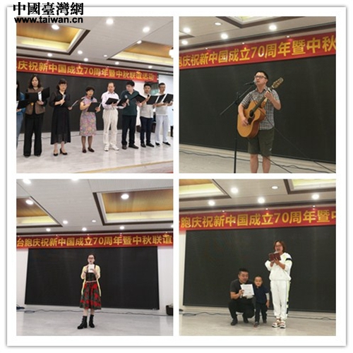 聯(lián)誼活動(dòng)以“親情中華·一起讀中國(guó)”為主題,通過(guò)朗誦音樂(lè)會(huì)的形式,謳歌祖國(guó)壯麗的70年,同心禮贊新中國(guó),攜手奮進(jìn)新時(shí)代;顒(dòng)從主持到表演全部由在蓉臺(tái)胞擔(dān)綱!稅(ài)我中華》、《紅旗飄飄》、《春天的故事》等一首首經(jīng)典歌曲,勾起了大家對(duì)祖國(guó)的深深眷戀和強(qiáng)烈共鳴;詩(shī)朗誦《次北固山下》、《鄉(xiāng)愁》,獨(dú)唱《明月千里》表達(dá)了鄉(xiāng)親們對(duì)故鄉(xiāng)的深切思念;集體朗誦《我驕傲,我是中國(guó)人》、《祖國(guó)啊,我親愛(ài)的祖國(guó)》凝結(jié)了愛(ài)國(guó)之聲、人民之心、民族之魂,讓在場(chǎng)每個(gè)人的內(nèi)心都體驗(yàn)到一種噴涌而出的激情,蕩漾著對(duì)祖國(guó)的崇高之愛(ài)。在集體合唱《我和我的祖國(guó)》中,活動(dòng)達(dá)到高潮,大家共同祝愿?jìng)ゴ笞鎳?guó)繁榮昌盛、國(guó)富民強(qiáng)。