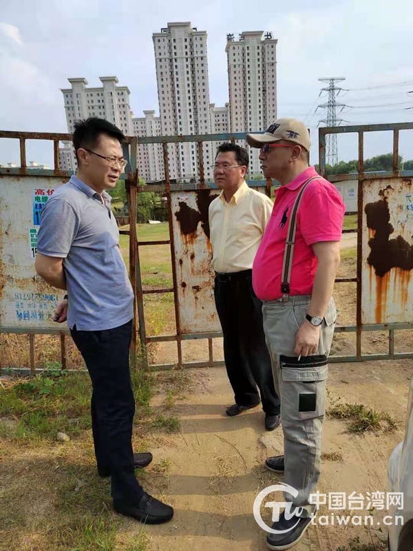 實地考察兩岸“568”莊園項目建設情況并與企業負責人現場交流。(圖片來源:遼寧省臺辦)