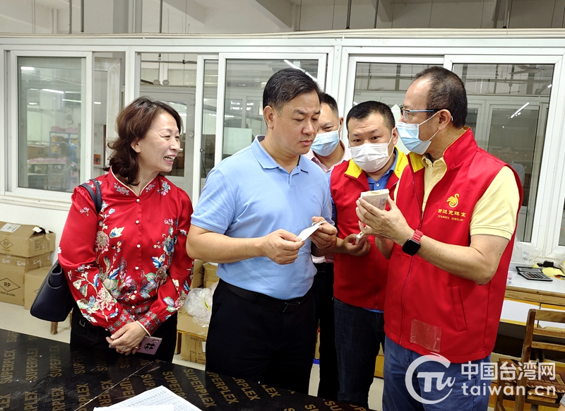 在梧州斯達克珠寶有限公司生產一線調研(圖片來源:廣西梧州市臺辦)