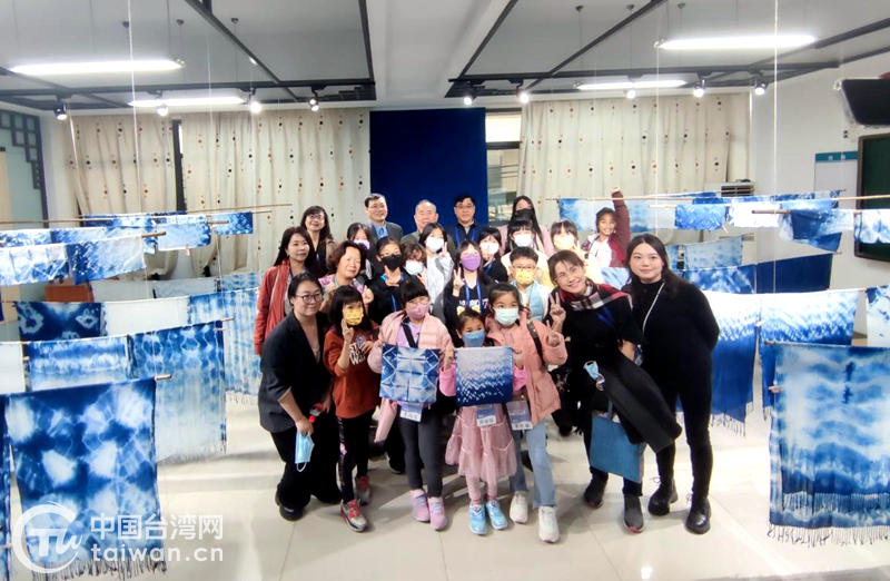 非遺制作藍白之美 臺灣小學師生在無錫體驗藍印花布扎染技藝