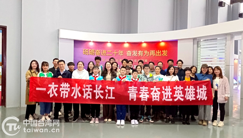 兩岸青年在“百年武水紅色印記”主題展前合影(圖片來(lái)源:武漢市臺(tái)辦)