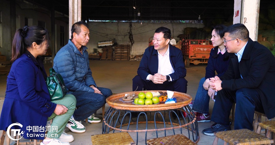 云南省委臺(tái)辦主任鄧恒源(中)走訪慰問西雙版納臺(tái)胞臺(tái)商榮興農(nóng)業(yè)有限公司徐玉英夫婦(左)。(中國臺(tái)灣網(wǎng)發(fā))