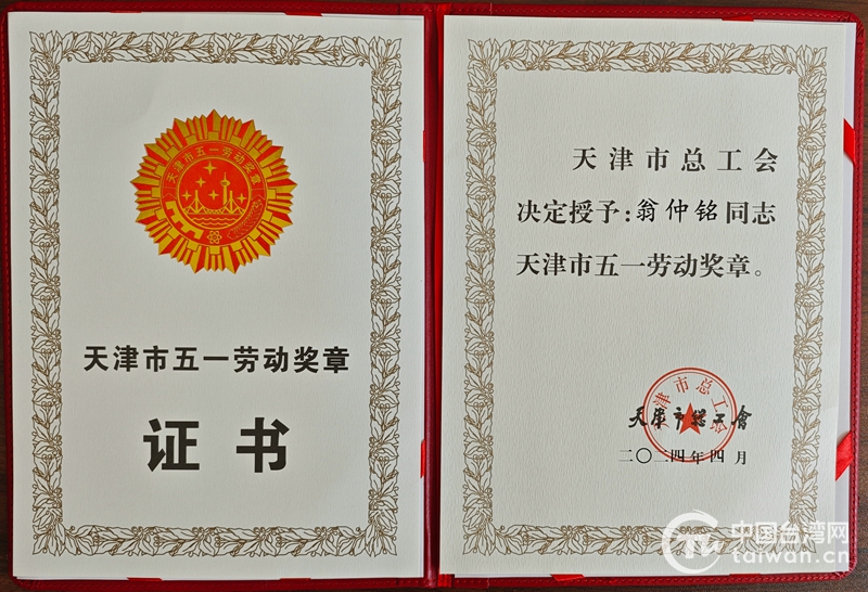 臺胞翁仲銘榮獲2024年天津市五一勞動(dòng)獎(jiǎng)?wù)?/h1>