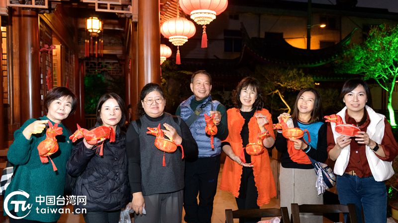 臺胞們手執(zhí)親手制作的彩燈合影。(中國臺灣網(wǎng)發(fā))