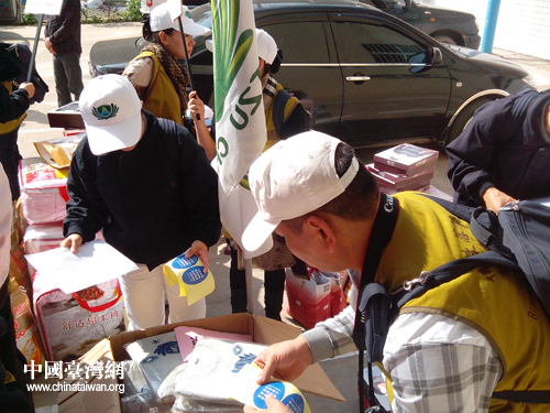 基金會志工為物資貼標簽。(圖片來源:五華臺辦)